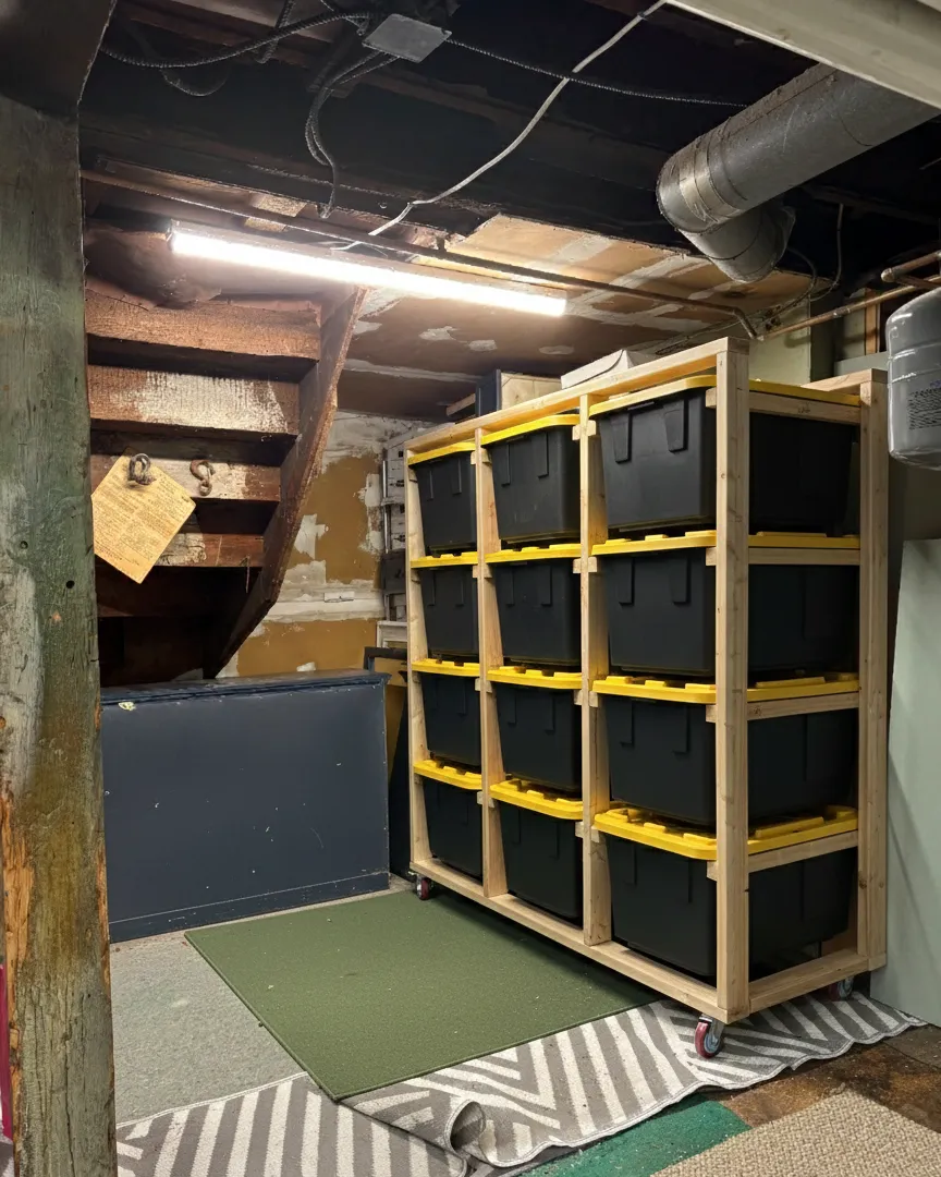 Then—and this is the part most people don't expect—I organize every single tote onto the shelves. Sorted. Arranged. Labeled if you want.